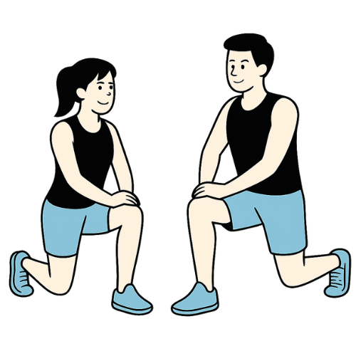 ゴミを拾うときはランジ(スクワット運動)のスタイルで、足を前後に開いて腰を落とします。